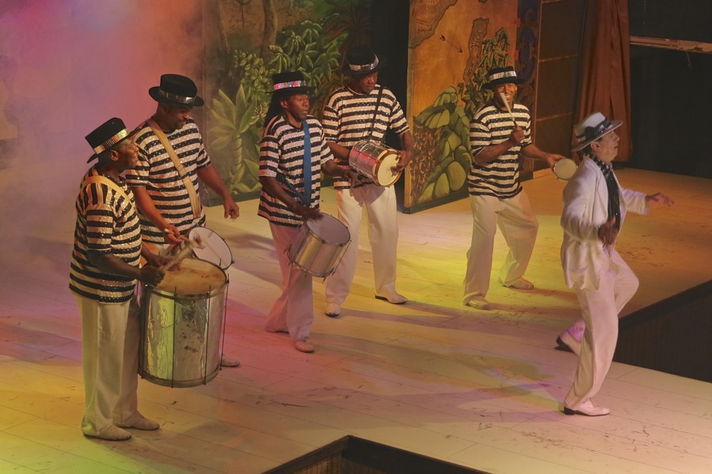 Durante casi dos horas de espectáculo, un elenco de bailarines y percusionistas elegantes que representan talentosos, movimientos y sonidos, los orígenes culturales de la música popular brasileña, resultado de la mezcla de portugués, indios y africanos.
